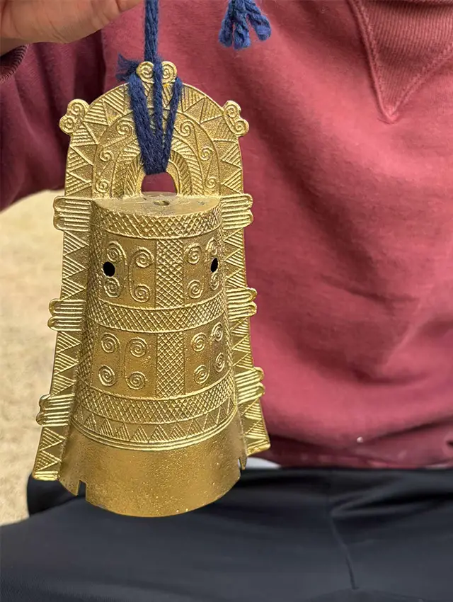 青銅器の自然冷却を待つ時間に、弥生時代を代表する青銅器の「銅鐸(どうたく)」や、その他の打楽器を使って、みんなで音楽を奏でてみましょう。