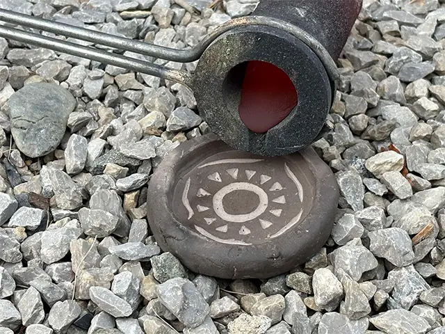 流し込んだ青銅が冷却できたら、鋳型をハンマーで破壊して、青銅器を取り出します。鋳型でデザインした自分だけの青銅器が出来上がっているでしょうか!?