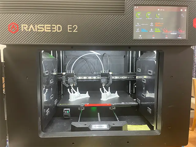 徐々に形成されていく出力中の立体物の横で、完成品の実物と3Dデータを自分の眼で見比べてみましょう。