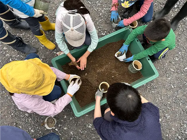 体験の後半では、伐採した木材を活用したり、新しい生命を植えることで、再生のサイクルを更に体感していきます。